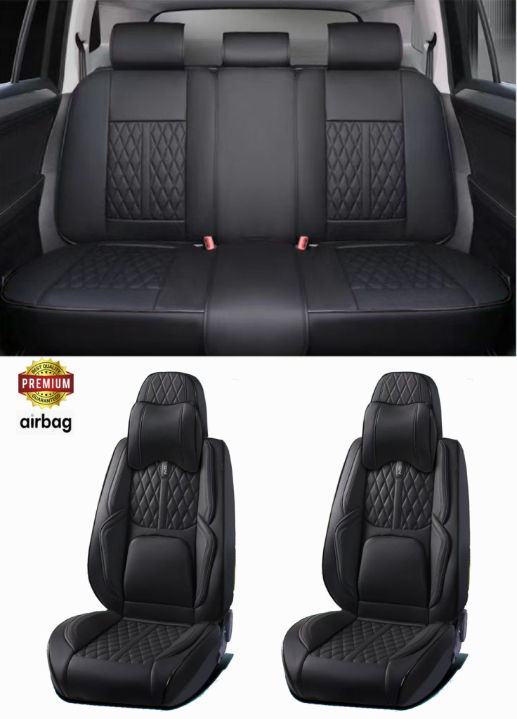 15 részes Prémium Magas minőségű Műbőr üléshuzat szett nyakpárnákkal - Légzsákos - Osztható - Fekete színben