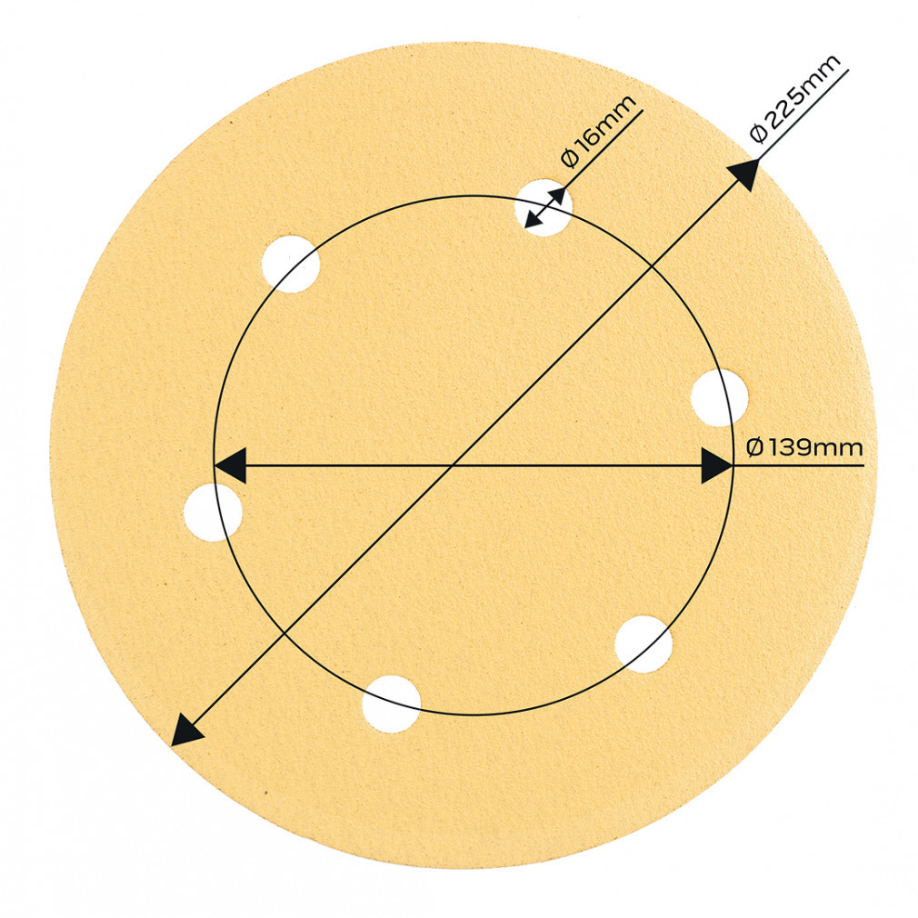 Tépőzáras csiszolópapír 225mm, k120, 5db, 6 lyukakkal az 59g264, 59g265 csiszológéphez.