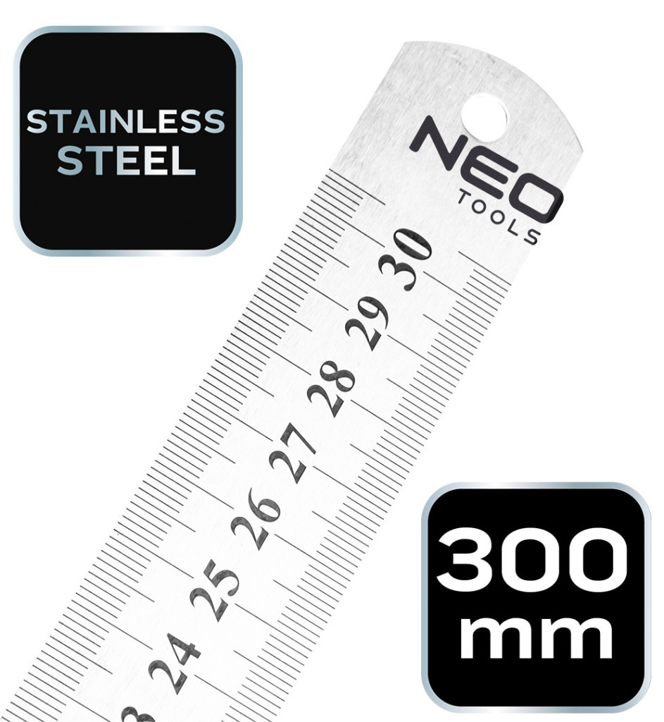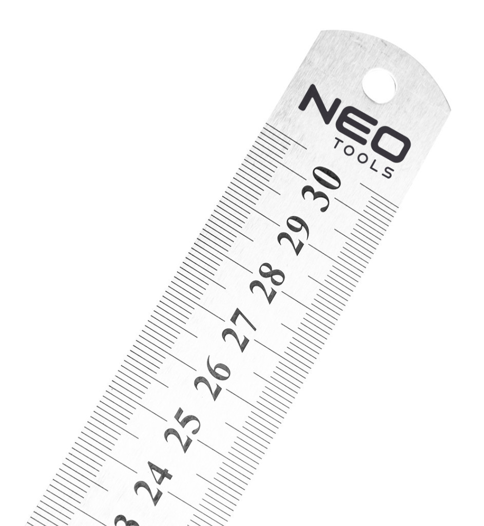 Lineáris mérőeszköz 30 cm, rozsdamentes acél 72-213 a NEO-tól egy 30 cm hosszú, tartós rozsdamentes acélból készült szerszám. Lehetővé teszi az alapvető mérések elvégzését. Egyértelmű jelölésekkel és a könnyű tárolás érdekében nyílással rendelkezik. A mérőeszköz nélkülözhetetlen lesz a műhelyekben és az építkezéseken. A NEO márkát szakemberek és barkácsolók számára ajánljuk.