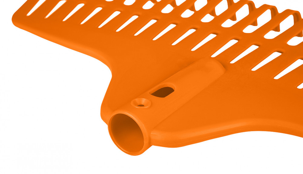 A NEO TOOLS narancssárga lombgereblye közepes, műanyag 95-043 460 mm széles és 240 mm hosszú. A nyél rögzítőfuratának átmérője 25 mm, magának a nyélnek az ajánlott átmérője pedig 23 mm. Narancssárga színű 300k moplénből készülnek. Könnyű súlyuk van és tartósak. A nyél könnyű cserélhetőségének köszönhetően a nyelet megoszthatják más kerti és mezőgazdasági szerszámokkal.