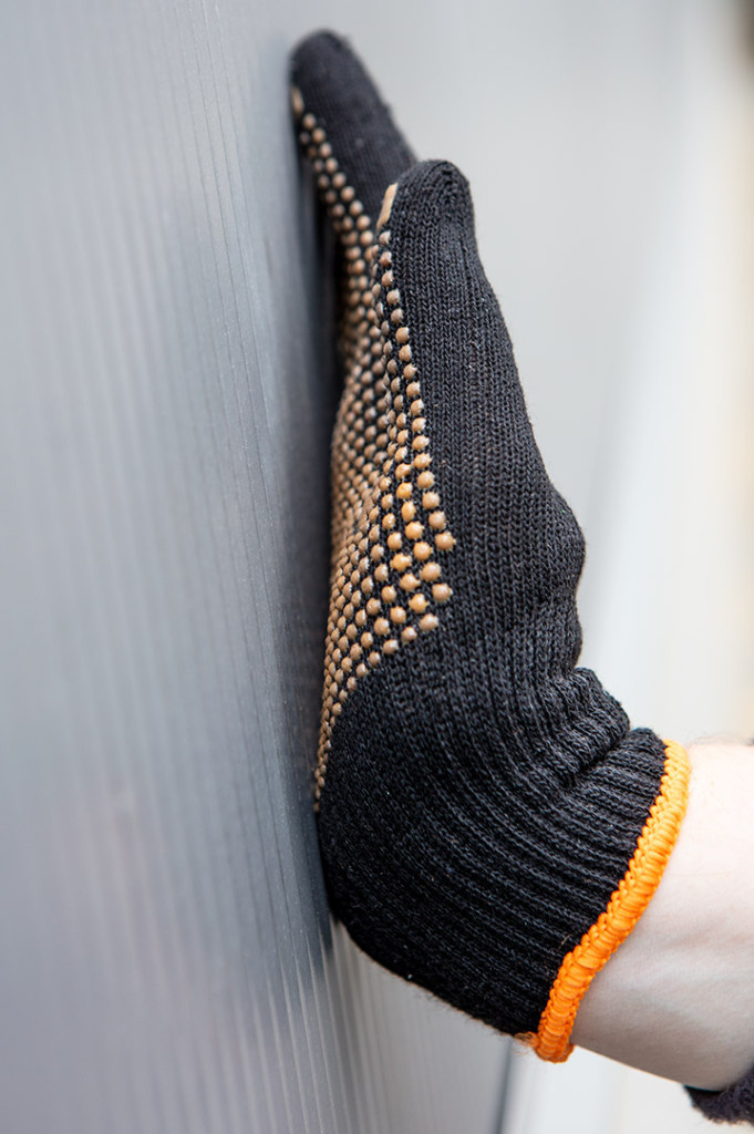 Munka kesztyű, pamut és poliészter, pontozott, méret 10, fő anyaga: poliészter pamutból, fedél: gumipöttyök, jól illeszkedik a kézhez, alkalmazás: minden szállítási munka, kezelés, tárolás, tárolás, összeszerelés, apró elemek gyártása, barkácsolás, autóipar, kertészet, CE