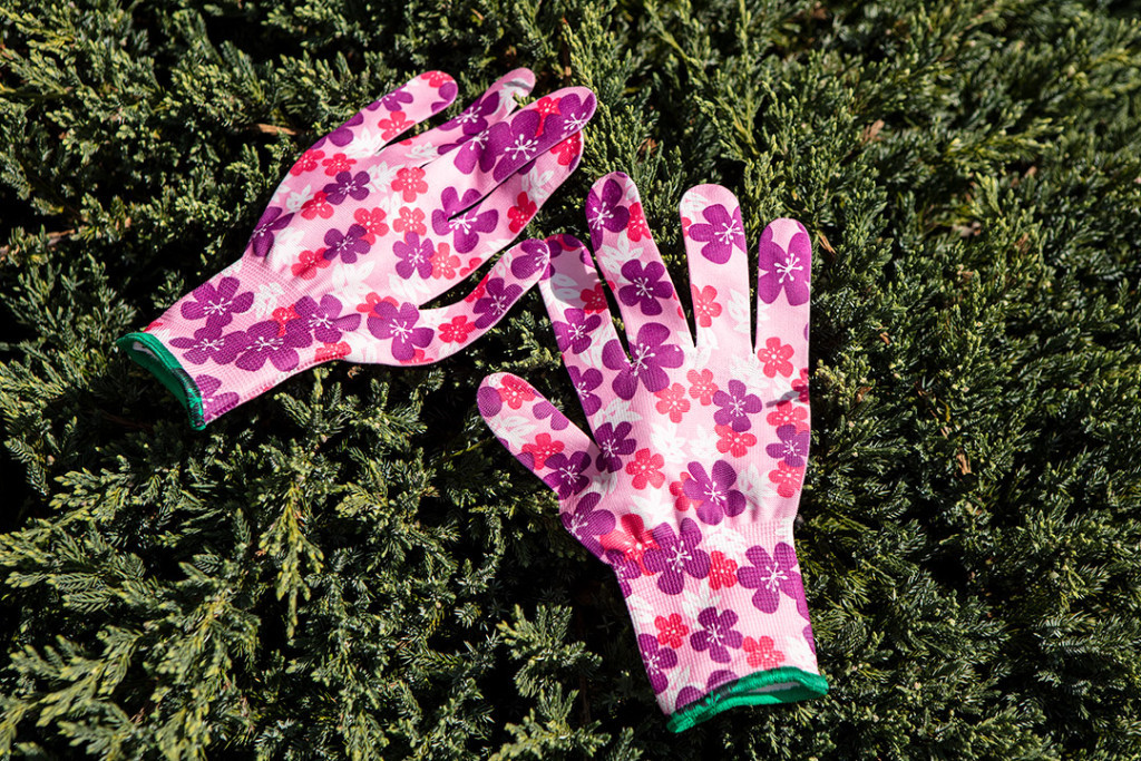 Kerti kesztyű, poliészter, virágmintás, 7" méret 97H146 a VERTO-tól, divatos virágmintás. Poliészterből készült, légáteresztő külső anyaggal a kényelem érdekében. Jól illeszkedik a kézhez, és a rugalmas szegélyvég megvédi a bőrt a szennyeződésektől és a nedvességtől. Kerti és otthoni használatra ajánlott. Megfelel a CE tanúsításnak.
