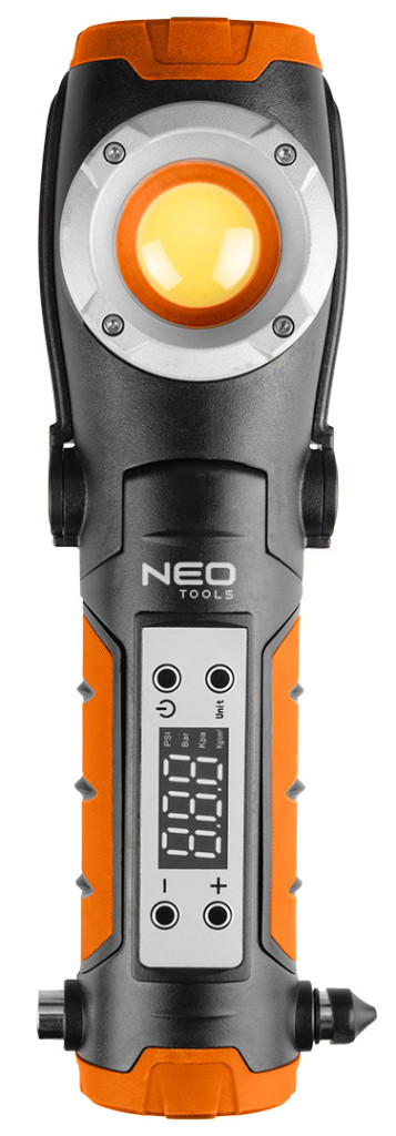 Akkus kompresszor és lámpa, 2000mAh akku, 800+400lum fényerő, max 10bar nyomás, USB és autós töltő