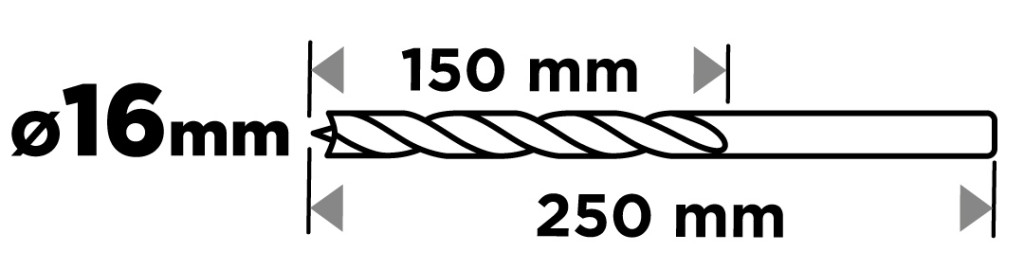Fafúró, hosszú, 16x250mm