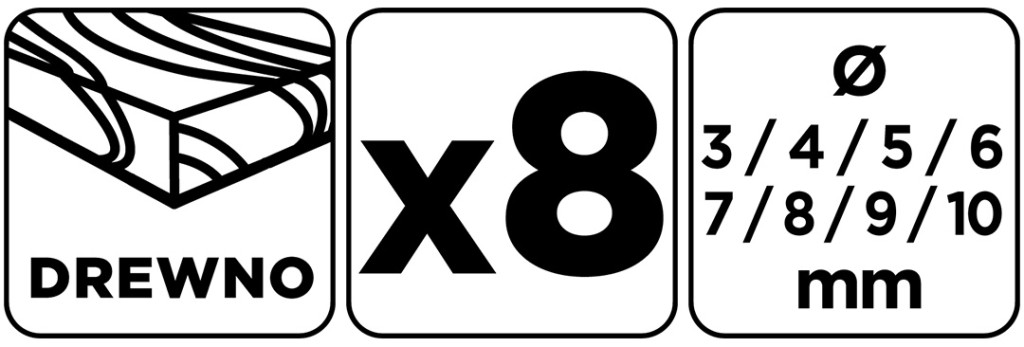 Fafúró készlet, 3-10mm, 8db