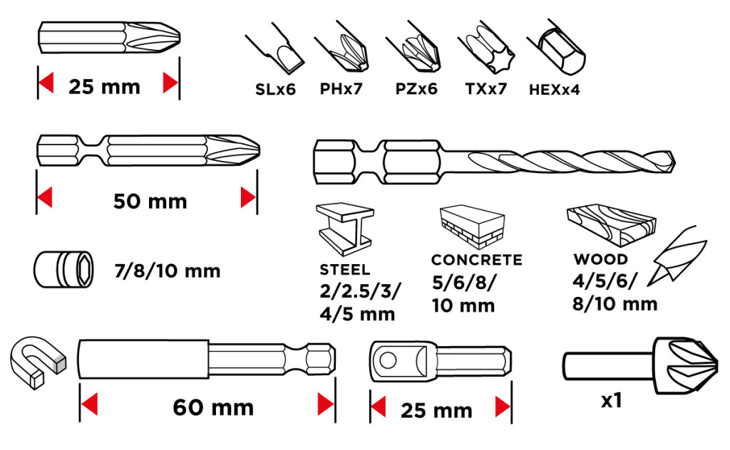 Fúró-csavarbehajtó készlet, 50db