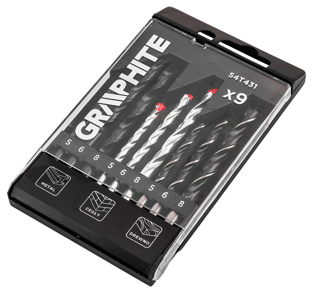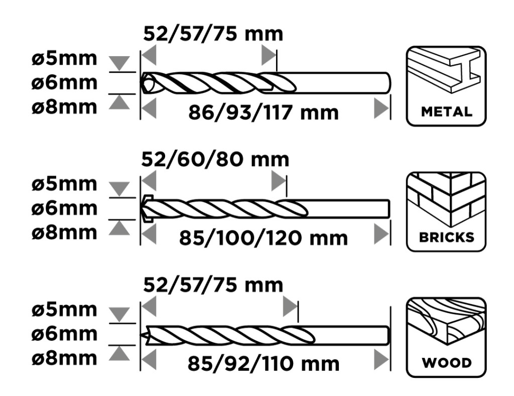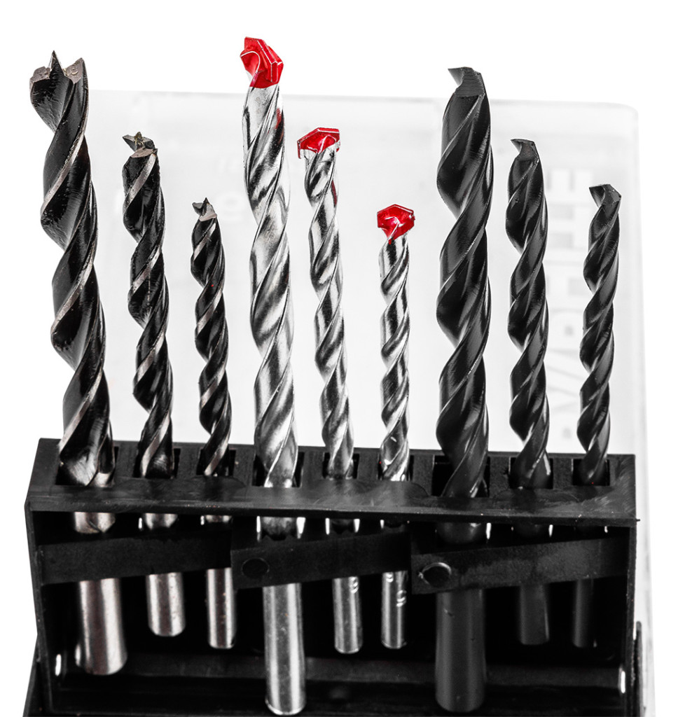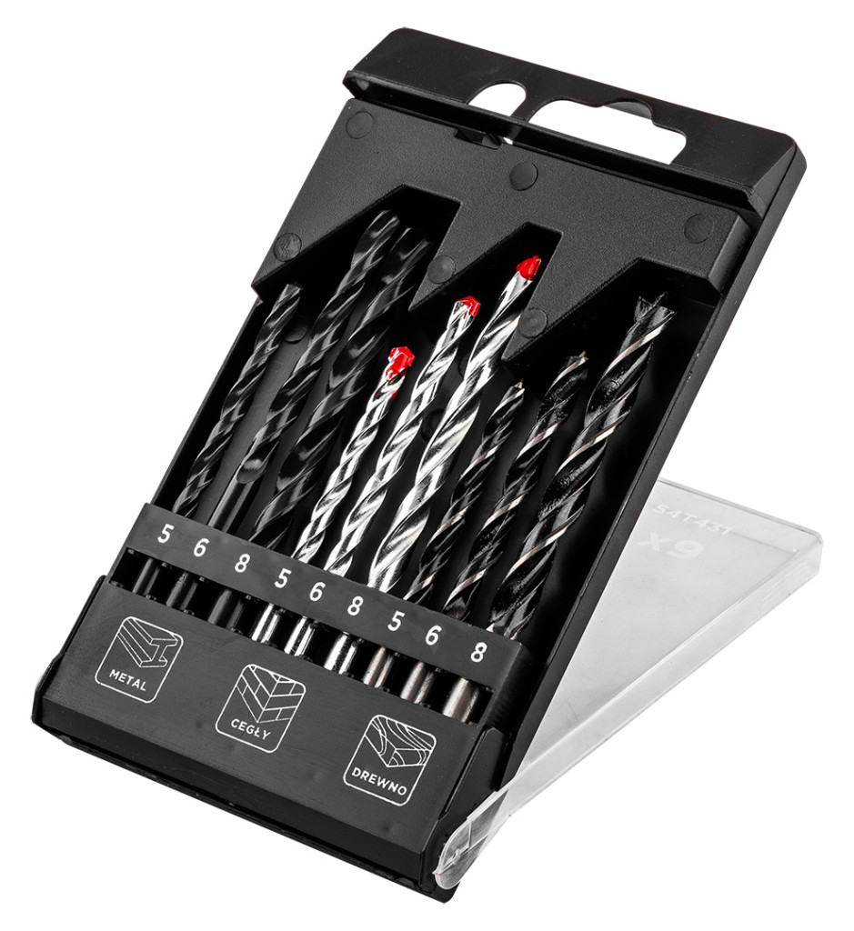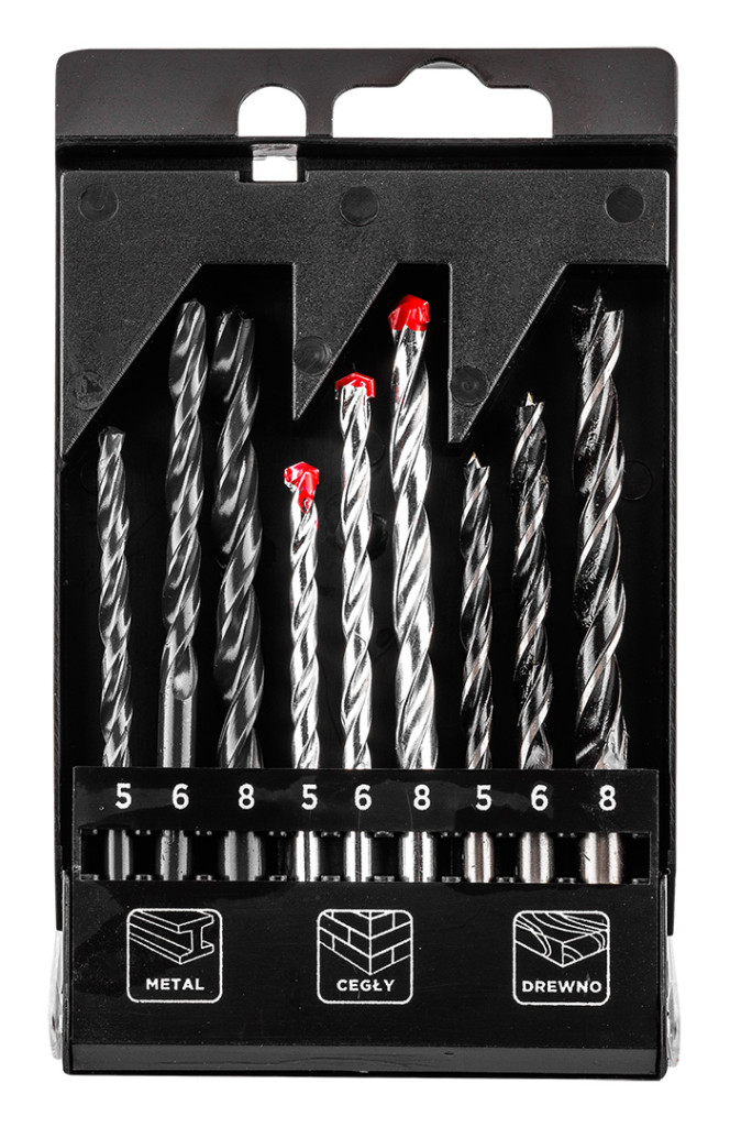 Fúrókészlet, fém, fa, kőzetfúrókkal, 5, 6, 8mm, 9db