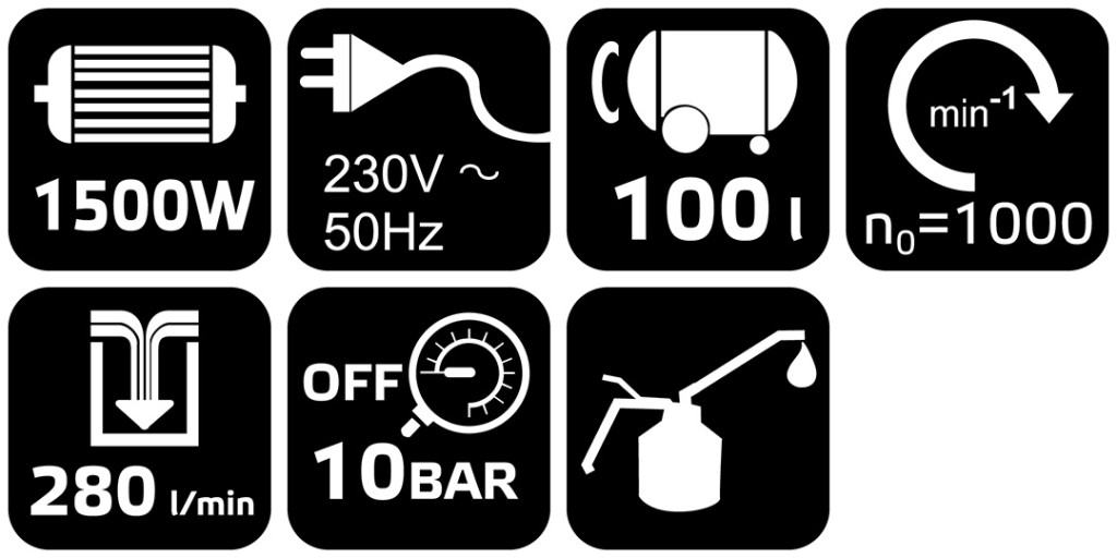 Kompresszor 100L, olajkenésű, 280L/perc, 10 bar