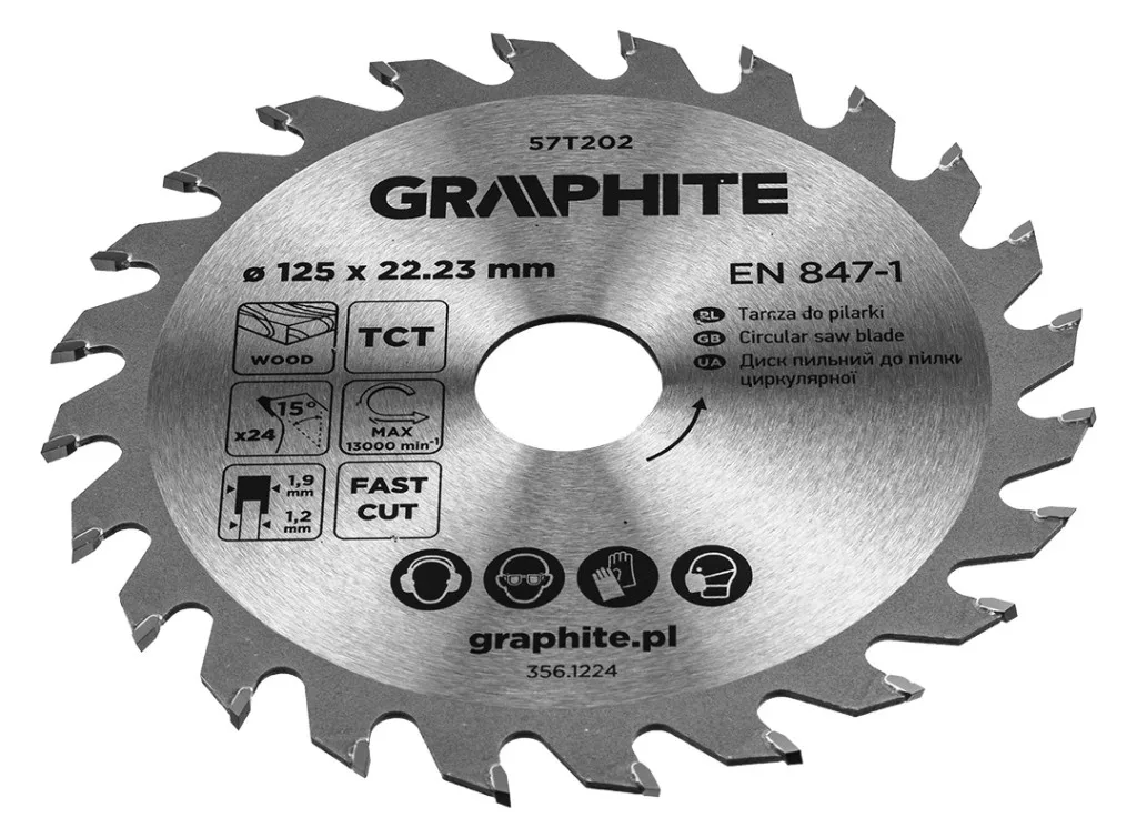 Körfűrészlap keményfém fogakkal, 125x22.2mm, 24fog
