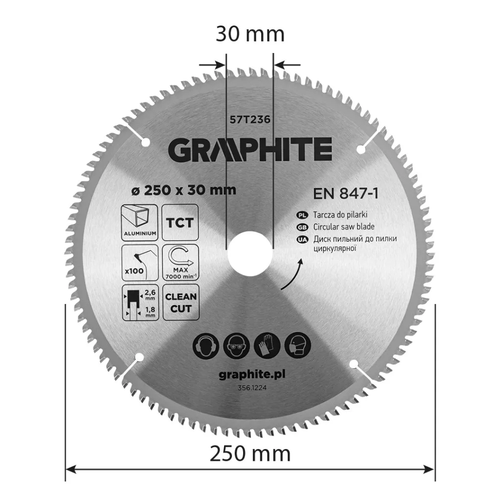 Körfűrészlap keményfém fogakkal, alumíniumhoz, 250x30mm, 100fog