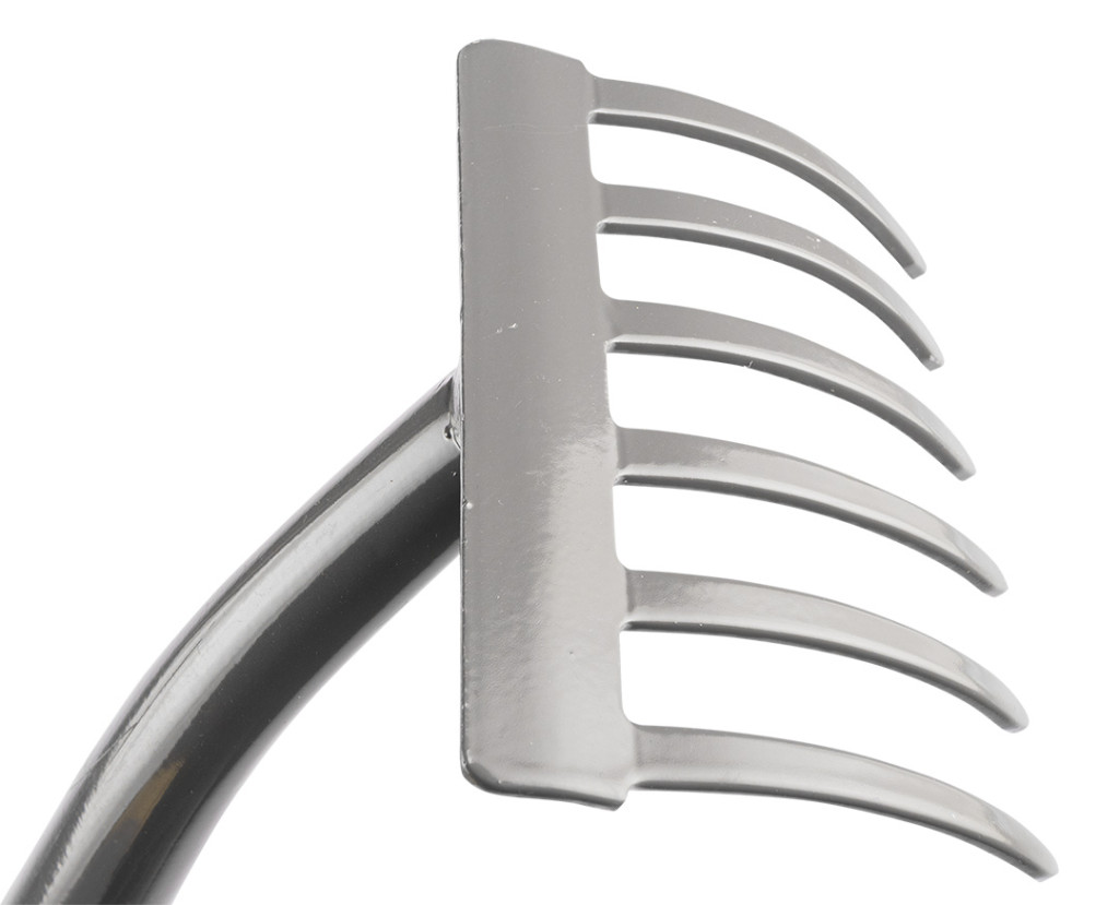 A NEO TOOLS 95-024 6 fogú gereblye egy A3-as acélból készült szerszám, amely 6 darab 6 cm hosszú, robusztus fogú szerszámmal rendelkezik. Gyomláláshoz, növényi maradványok gereblyézéséhez és általános kerti vagy erkélyi munkákhoz ajánlott. Méretei 29 x 11,3 x 7,5 cm. A NEO TOOLS gereblye ideális eszköz mind az amatőrök, mind a kerti munkák profijai számára.