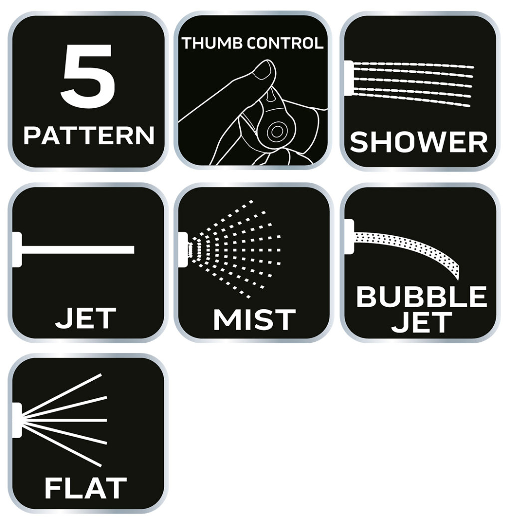 Öntözőpisztoly 5 funkciós, hüvelykujj szabályozás