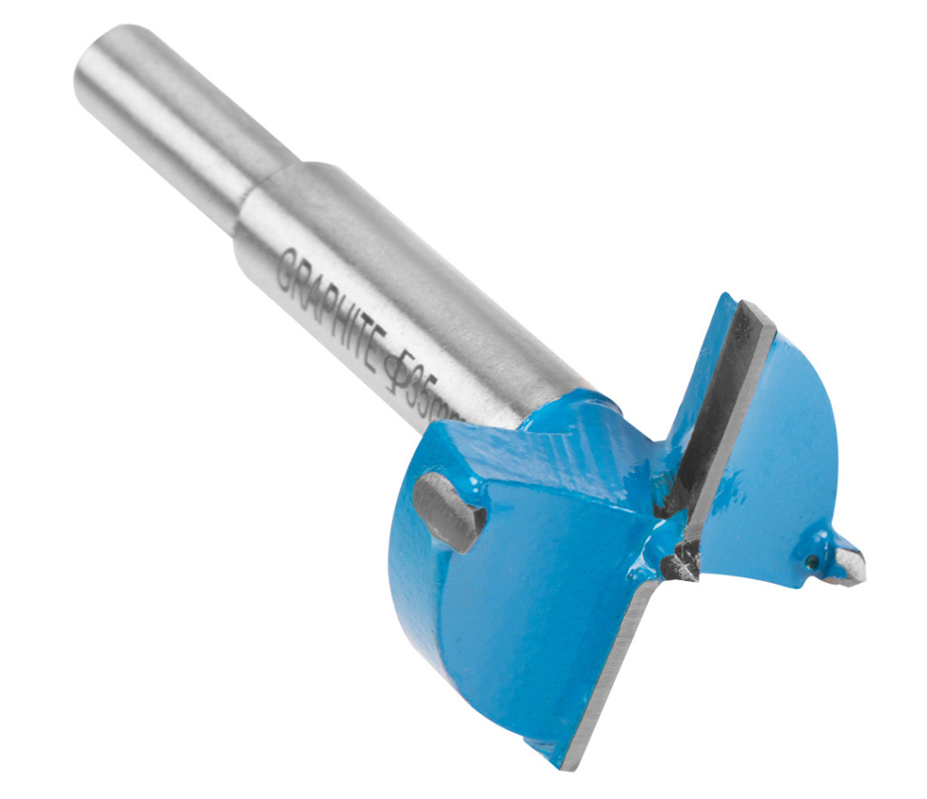 GRAPHITE 57H003 Pántfúró vezetősablonnal, 35mm. Kivetőpánt szerelőkészlet, amelyet körkivágóval, sablonnal, mélységmegállítóval és imbuszkulccsal kínálunk. A fej35 mm átmérőjű és 80 mm hosszú. Legfeljebb 30 mm-es fúrásmélységig. Önközpontosító, és négy pengével - két központi és két külső - szélesebb körű alkalmazást tesz lehetővé. A szár átmérője 8 mm. A készlethez tartozó sablon tartós műanyagból készült. Az eszköz minden fafajta és műanyaggal bevont forgácslap megmunkálására alkalmas. A sablon megkönnyíti a jelölést, a mérést, a fúrást, valamint minimalizálja a fúrószár elcsúszását a feladatok során. Ez a GRAPHITE készlet számos műhelymunkához jól használható.