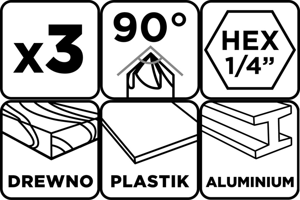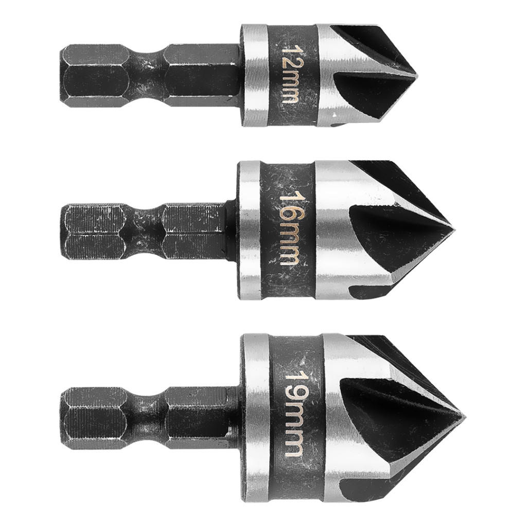 Süllyesztőfúró készlet, csavarfejekhez, 1/4" hatszög szár, 12, 16, 19mm, 3db