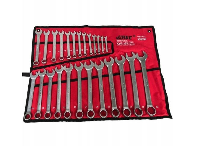 A készlet 6–32mm közötti méreteket tartalmaz, így szinte minden csavarhoz és anyához található megfelelő kulcs. A szerszámok erős, feltekerhető tárolótokban kaptak helyet, amely könnyen hordozható, falra akasztható, és megvédi a kulcsokat a sérülésektől.