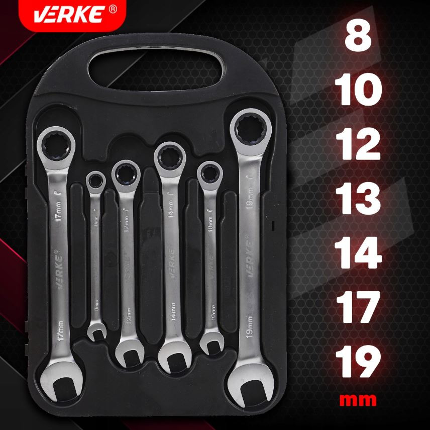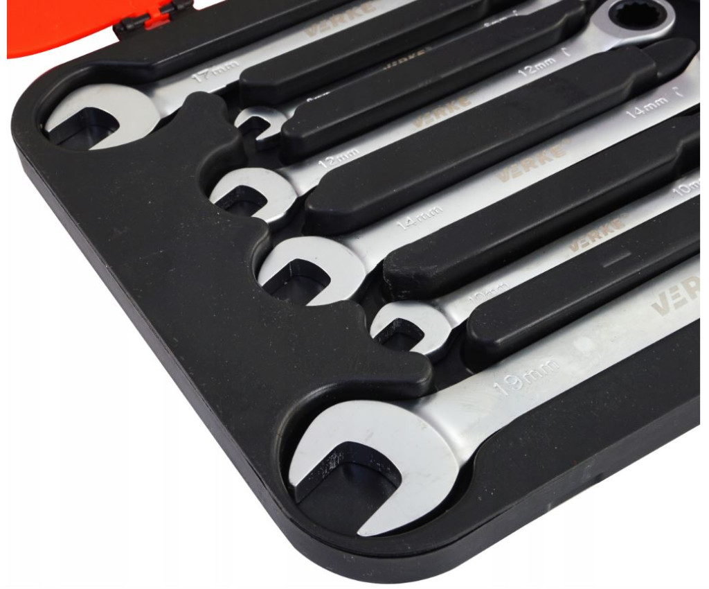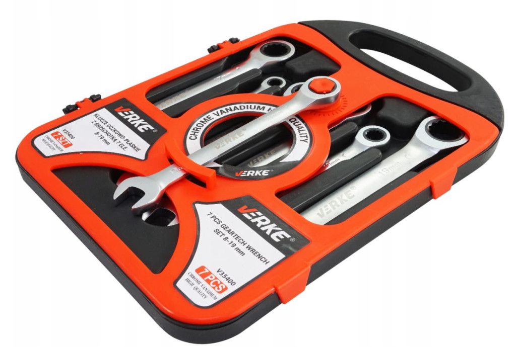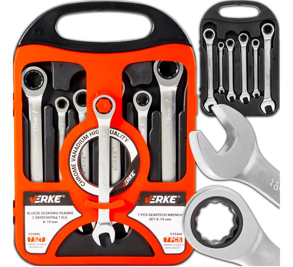 A Verke V35400 racsniskulcs készlet egy 7 darabos, 72 fogú precíziós racsnis villáskulcs szett, amely a leggyakrabban használt méreteket tartalmazza (8–19mm). Kiválóan alkalmas autószereléshez, gépkarbantartáshoz és általános szerelési munkákhoz, legyen szó professzionális műhelyről vagy otthoni garázsról.